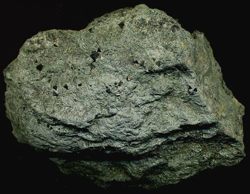 Derivato da lave, tufi, filoni basici e quindi con diverse tessiture e frequenti strutture relitte; talora derivato da marne miste a materiale tufaceo.