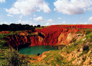Curiosa invece la foto bauxite_b.jpg, che ritrae il pittoresco Lago Rosso nei Pressi di Monte Sant'Angelo, fra Otranto e Punta Palascia, in cui il contrasto fra il verde della vegetazione e delle acque del lago e il rosso dei giacimenti di bauxite dà vita ad un paesaggio particolarmente suggestivo.