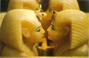 Inoltre, gli stessi vasi canopi contenenti le viscere del famosissimo faraone Tutankhamon presentavano dei tappi ornati con busti intagliati nell'Alabastro(essi si possono vedere nella foto alabastro_b.jpg)