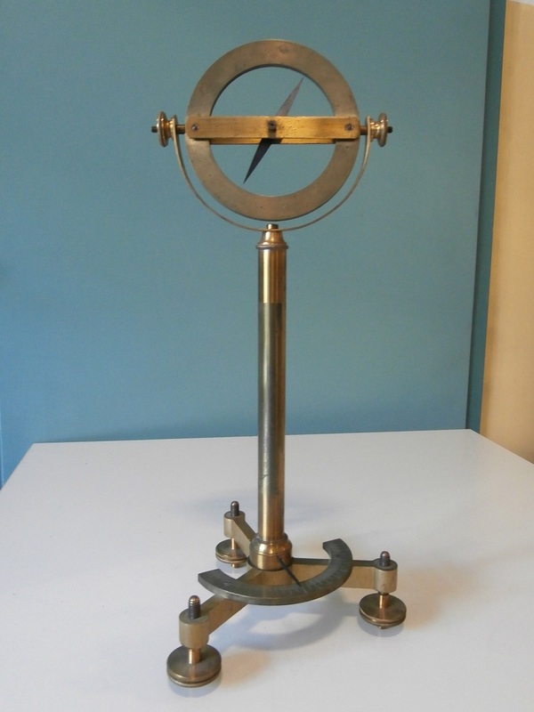 Lo strumento è sorretto da un piedistallo in ottone, con viti calanti, che sostiene un sistema ad ingranaggi attraverso il quale è possibile disporre verticalmente o orizzontalmente il cerchio sul quale è imperniato l’ago magnetico.