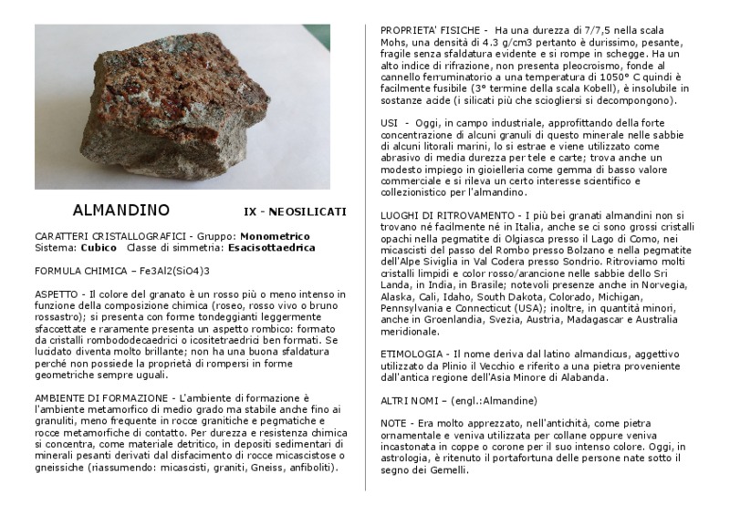 Scheda mineralogica Item Type Metadata