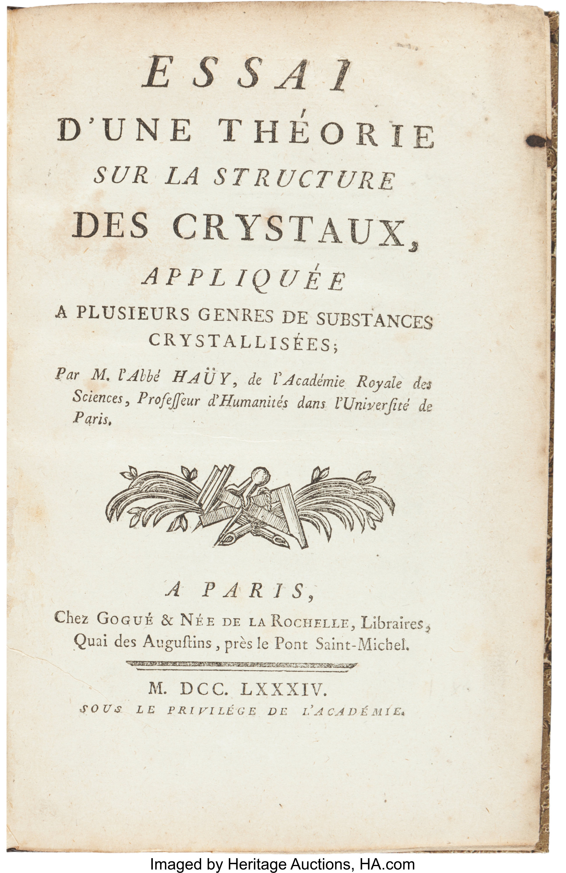 Nel 1784 pubblica l'Essai d'une théorie sur la structure des cristaux, in cui viene spiegata la seconda legge della cristallografia che afferma che, sulla base dell'osservazione delle forme di sfaldatura, suppone i minerali e i cristalli costituiti dalla sovrapposizione regolare di un poliedro o cella elementare.